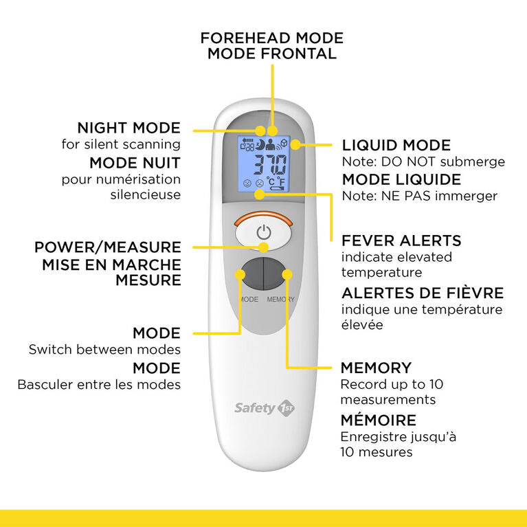 Caring for a sick child is stressful, but getting an accurate temperature read shouldn't be. The Safety 1st Simple Scan Forehead Thermometer makes it easier than ever. Simply position the thermometer one inch from the center of the forehead and press the measure button. In just one second, you'll hear the beep that lets you know the reading is complete. It's really that fast and easy!