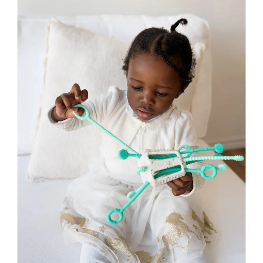 Zippee is a silicone activity toy perfect for 18months+. Little fingers can't resist Zippee's flexible, textured cords and easy to hold grips. Babies and toddlers love pulling Zippee's cords from side to side and hearing and feeling the various sounds and vibrations the cords make.
