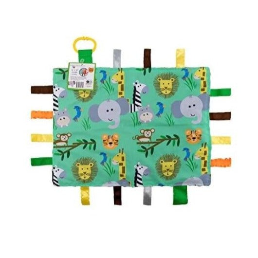 It's the perfect security blanket that will last you forever and cherish those memories of your little ones first zoo visit. The roars of a lion, monkey sounds and the way they tried to say "elephant". As your child grows up, the patterns will encourage your child to learn basic shapes and colors. The Learning Lovey is accented with coordinating ribbons that are sewn shut, so little fingers do not get intertwined in the ribbon loops. The variety of textured ribbons and fabrics encourage tactile play and help children develop cognitively, socially and emotionally through sensory interaction.