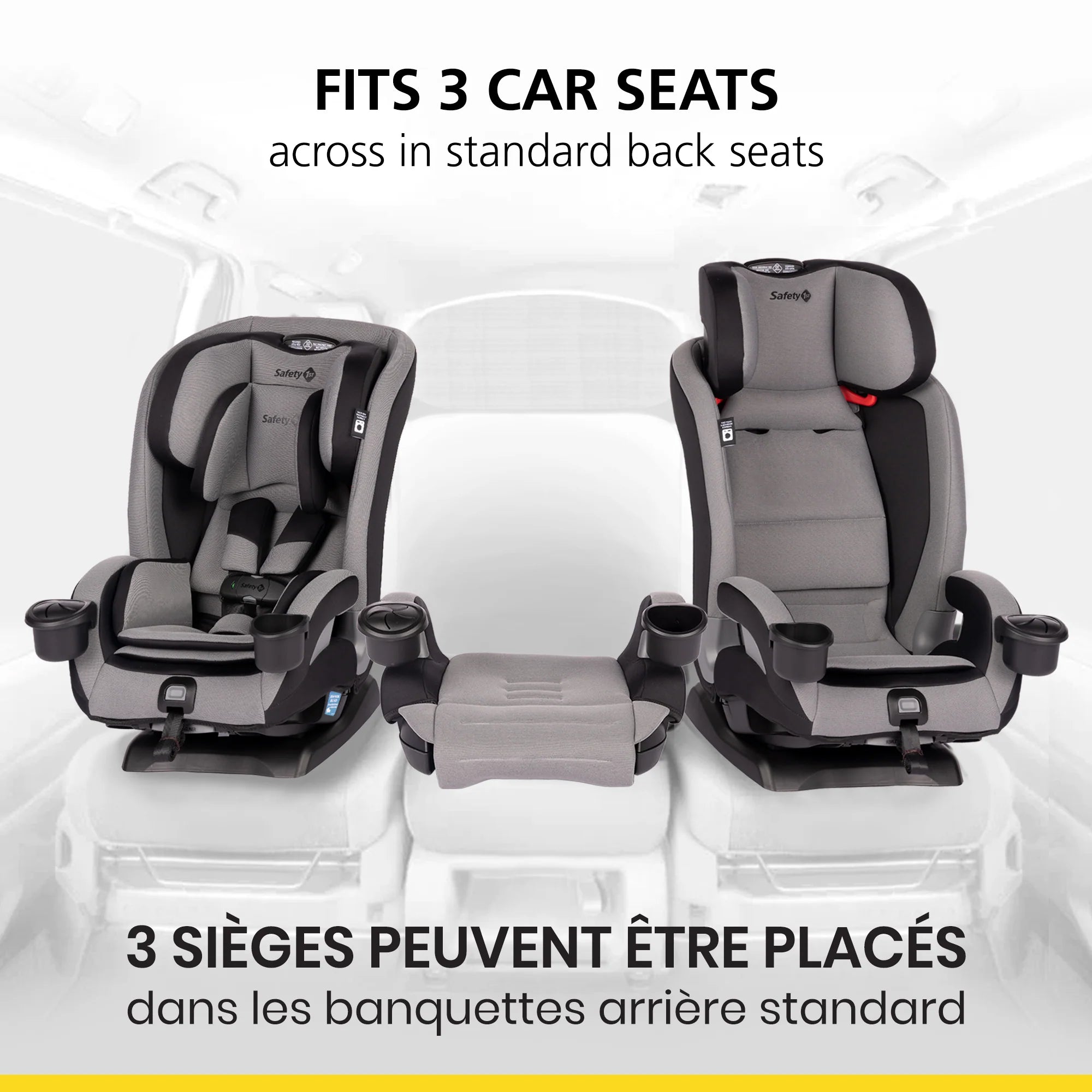 - FITS 3 ACROSS IN STANDARD BACK SEATS This convertible car seat’s slim design allows parents to comfortably fit more in the back seat without sacrificing comfort or safety.