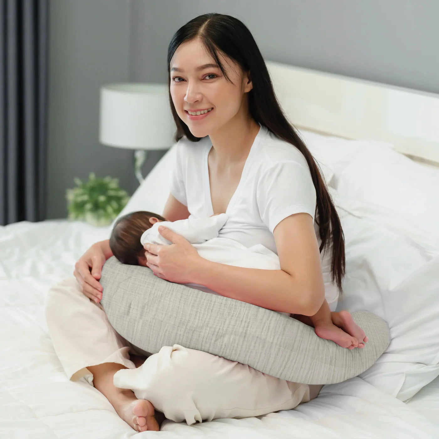 Simmons' Nursing Pillow with Removable Cover is perfect for nursing! Make nursing sessions more comfortable with the Simmons luxury cotton muslin nursing pillow. It's designed to support infants while breastfeeding, with a removable, washable cover to ensure easy cleanup. It can also be used to support children who are still learning to sit up while they rest or play.