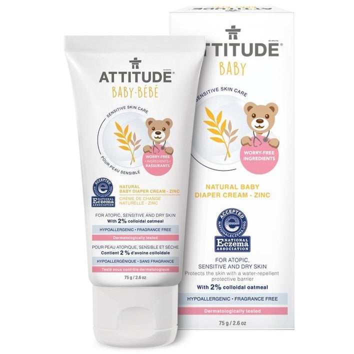 Did you know you zinc is a mineral found in nature? People have been using it for centuries as a skin treatment! ATTITUDE’s fragrance-free, hypoallergenic Sensitive Skin Natural Baby Diaper Cream uses mineral-based ingredients like zinc because it forms a physical, impermeable barrier over your child’s thin skin to block moisture and prevent irritation. Our worry-free, EWG Verified™ formula also uses plant-based ingredients like 2% colloidal oatmeal, chamomile extract and shea butter to soothe, protect and hydrate their delicate bottoms after diaper changes and baths. It’s dermatologist tested because we only want the best for you and your family.