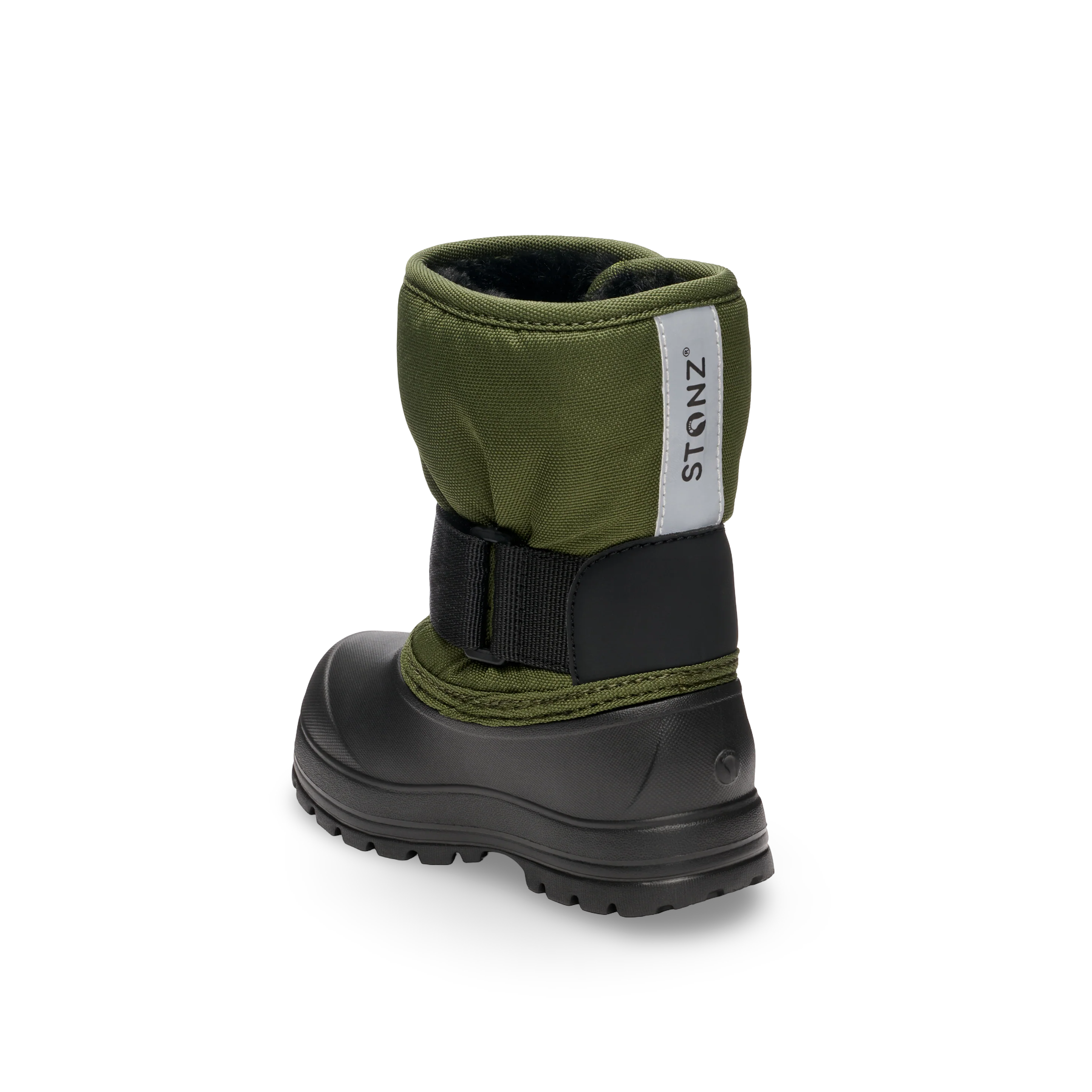 Upper: 100% Polyester with TPU backing, DWR finish - The 100% polyester woven upper with TPU backing and a DWR finish provides durable, waterproof protection, shielding little feet from snow, slush, and moisture while ensuring long-lasting wear.