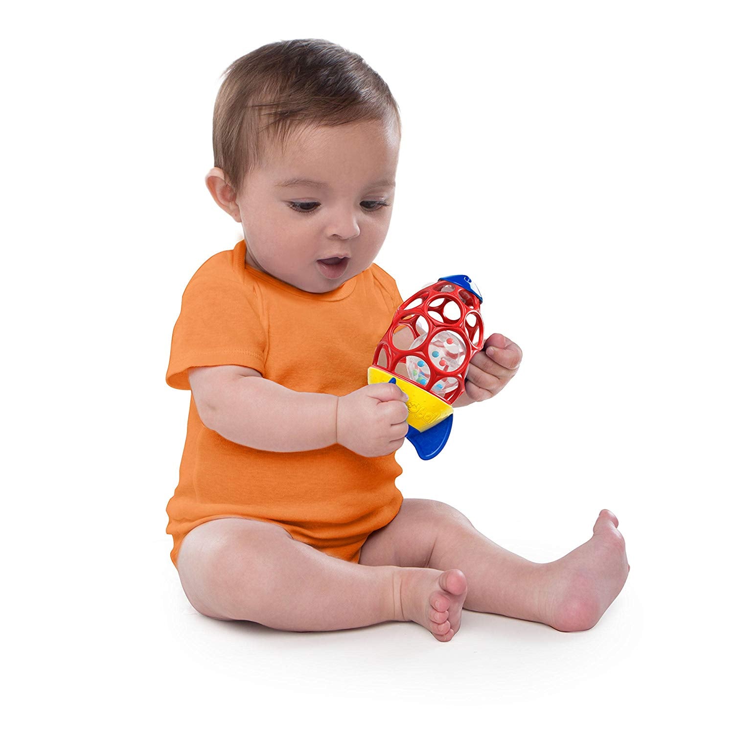 Easy to grasp and engaging Oball designed rocket features a rattle ball with multicolored beads that create fun rattle sounds! Plastic fins twist and turns to create entertaining ratcheting sounds!
