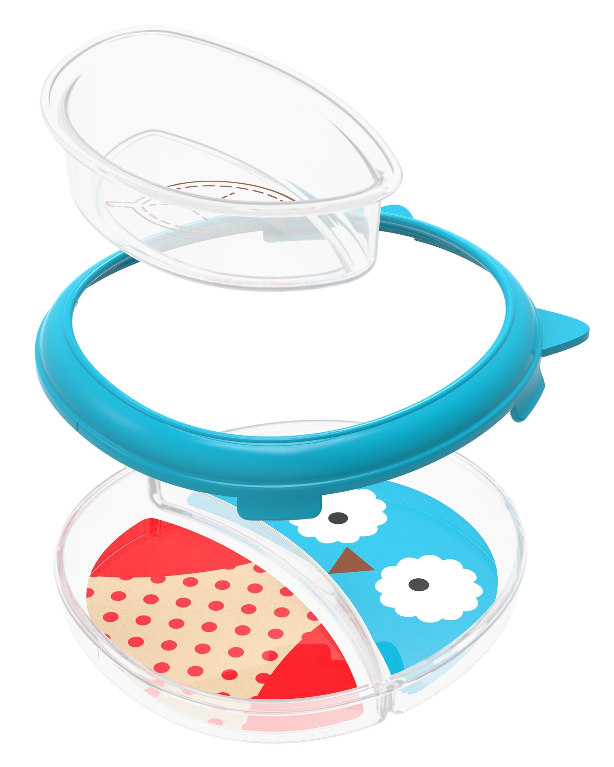 Designed to encourage toddler independence at mealtime, this three-piece plate and bowl set is the perfect tool to teach little ones to feed themselves. Featuring a unique removable scoop-aid training rim (with cute ears) it helps guide food onto your little munchkin's fork and spoon so it stays in the bowl and off the table and floor. The three-piece set includes a divided toddler plate with two sections, plus a separate translucent toddler bowl that fits perfectly into the toddler plate. The training rim easily snaps on and off depending on your needs. A non-skid bottom prevents slipping and sliding. Hurray for less mess at mealtimes!