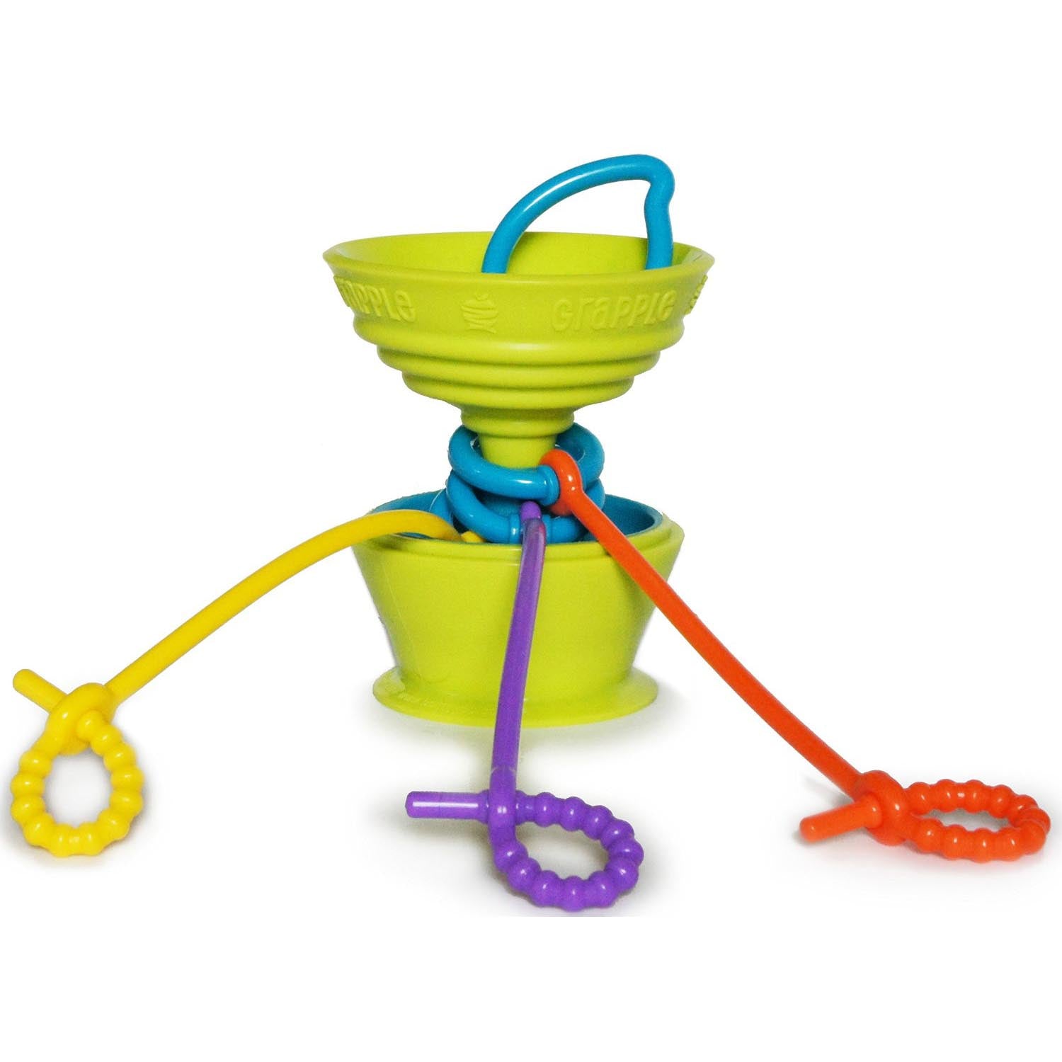 The Grapple suctions to any smooth surface and keeps your babys favorite toys always within reach and off the floor. It is innovative, patented design makes it safe, easy to use and easy to clean.