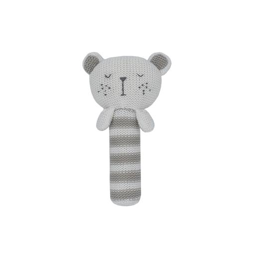 Matching with the Brooklyn Bear plush toy, this knitted rattle toy will help entertain and soothe your baby. The adorable character rattles to help stimulate the baby both visually and audibly.