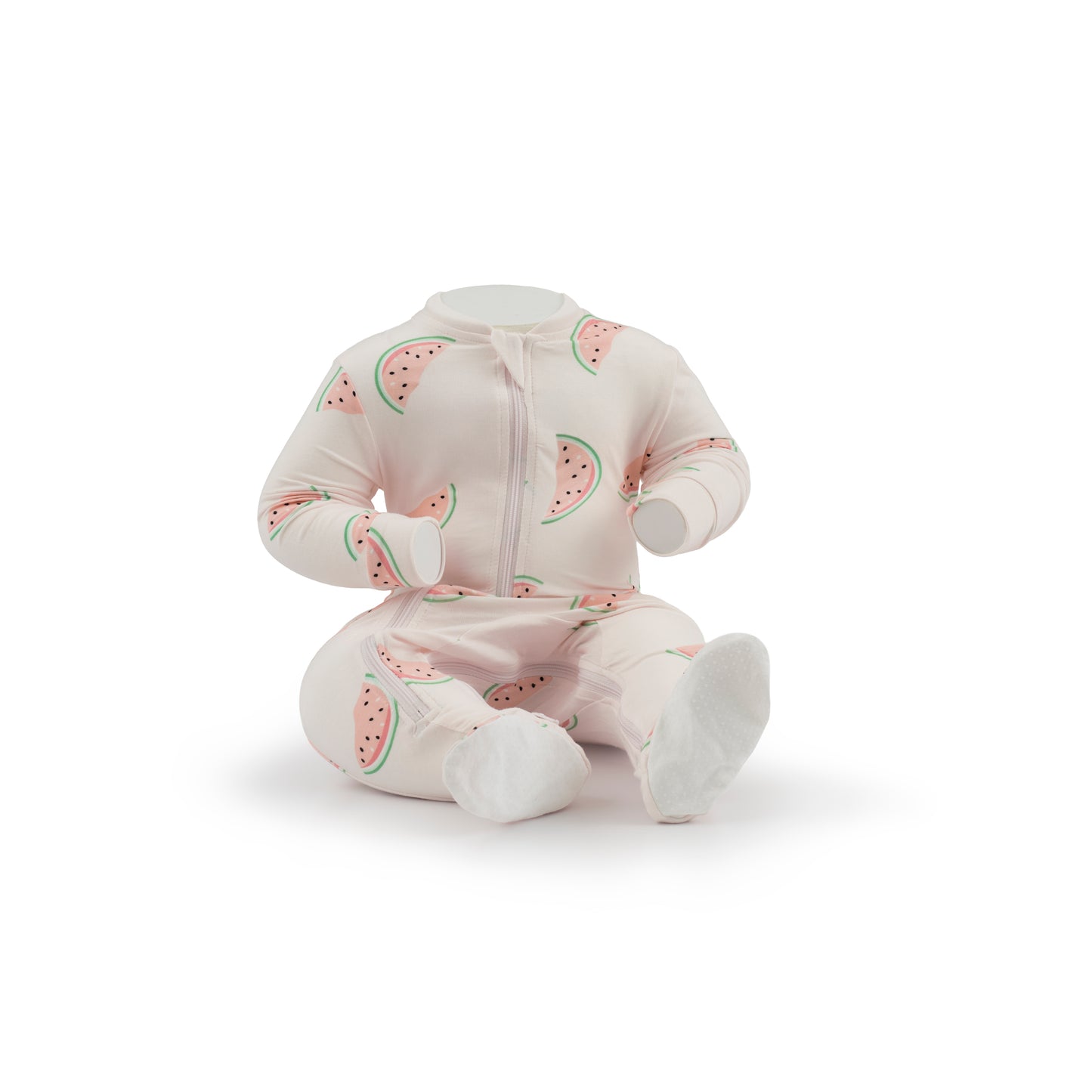 Newborn and 0-3M sleepers have fold over mitts to keep little hands covered (or not!). while our 3-6M up to 18-24M sizes feature grippy soles for those on the move.